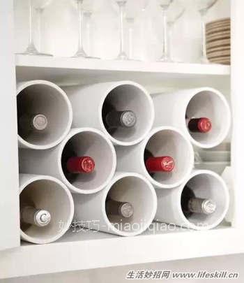 这些放葡萄酒的小圆柱都是pvc管,任何一个五金店都有卖,可以涂上您喜欢的颜色
